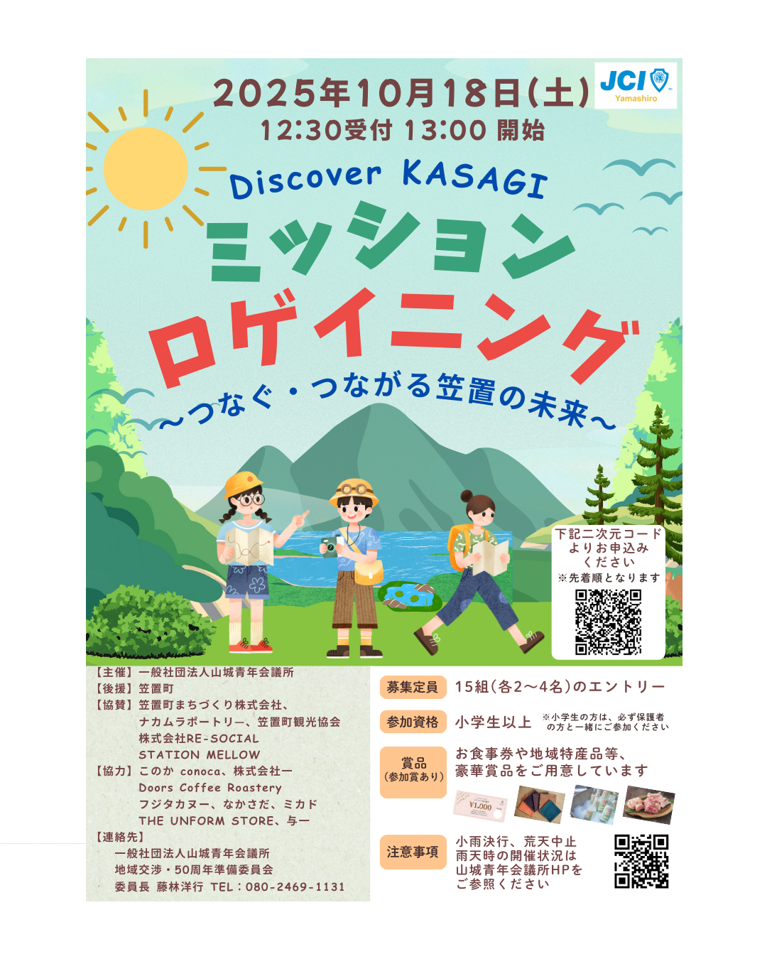 📍Discover KASAGI ミッションロゲイニング~つなぐ・つながる笠置の未来~ 開催決定!\笠置のまちがフィールドに!/2025年10月18日(土)、笠置町南部を舞台に🏃♂️🏞「ロゲイニング……